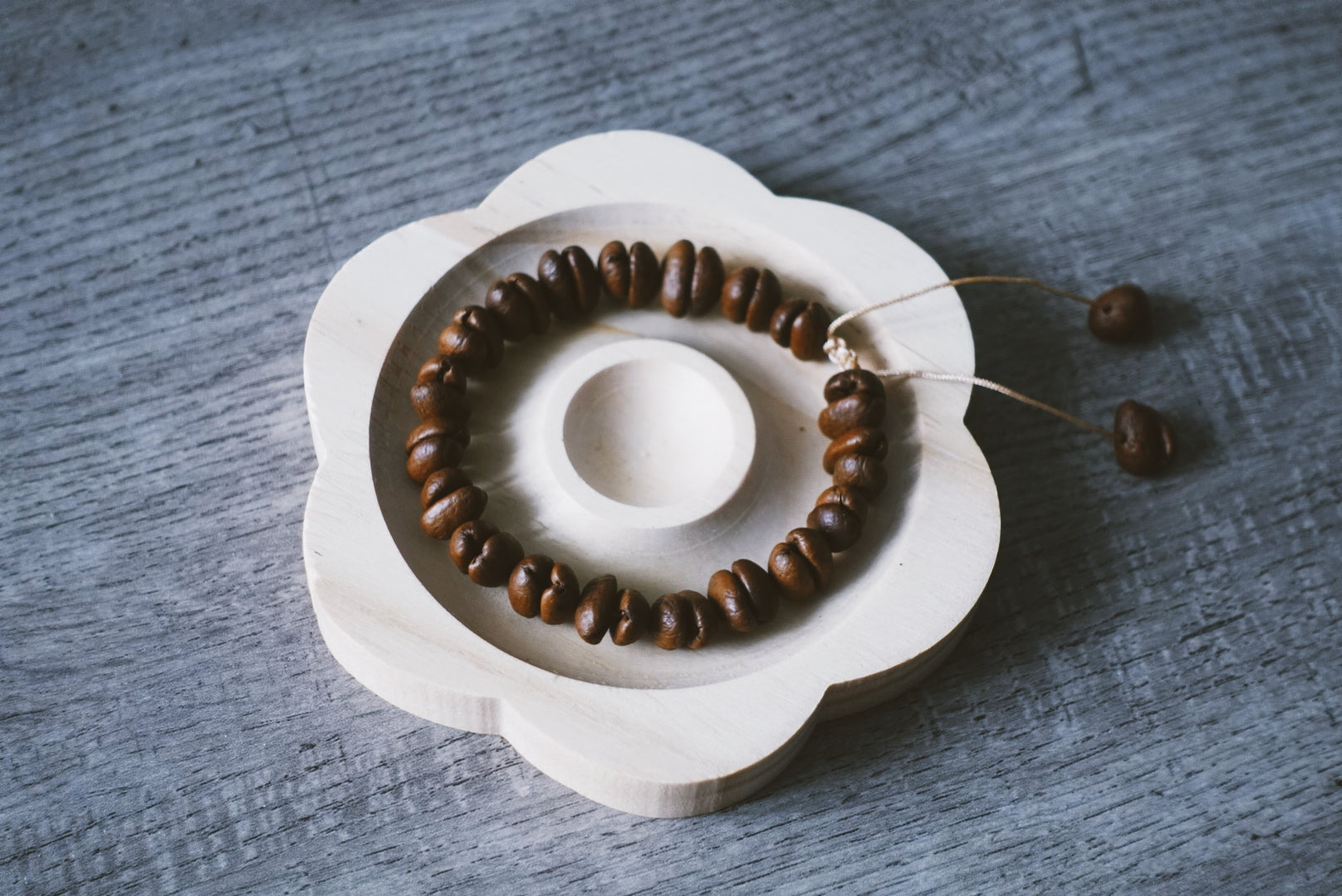 • Design and assemble your own coffee bean bracelet